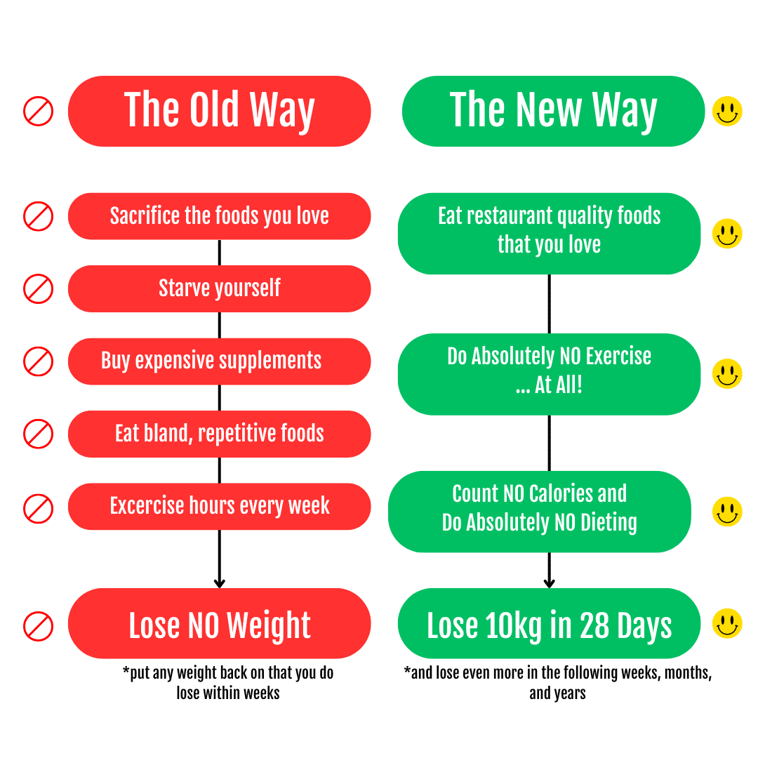 Our program is based on the latest most advanced nutritional science and behavioural psychology. We’ve cracked the code on how to lose weight effortlessly. Our participants enjoy mouth-watering meals that keep them full and satisfied. And the best part? There is no exercise required.