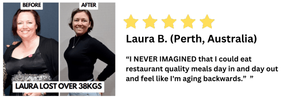 🌟Testimonial: "..my start weight was 106kg - current 67.5kg and as for the cost of eating - we save lots of money as we consume less and are on ZERO medications with ZERO Drs visits." Laura (WA)